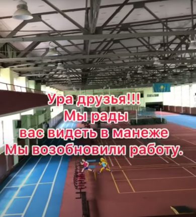 Дорогие друзья! Мы возобновили работу. Предоставляем платные услуги для населения- тренировки в ⏰ с 12.00-13.00ч ⏰с 13-00-14.00ч ⏰с 19.00-20.00ч. Одновременно на занятия допускаются до 30-ти человек! 🏃♀️🏃🏻♂️ 📌 Вход в манеж в маске!‼️