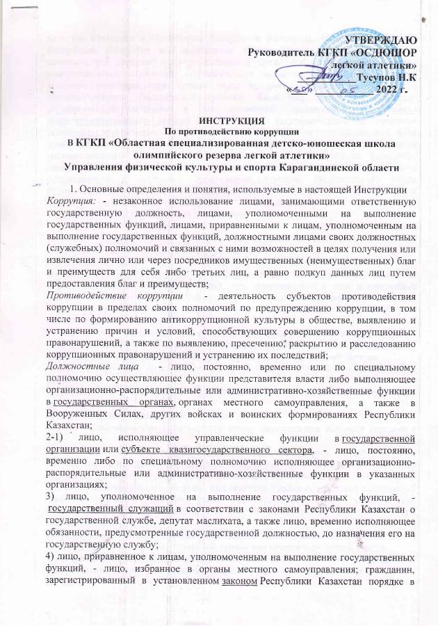Инструкция по противодействию коррупции