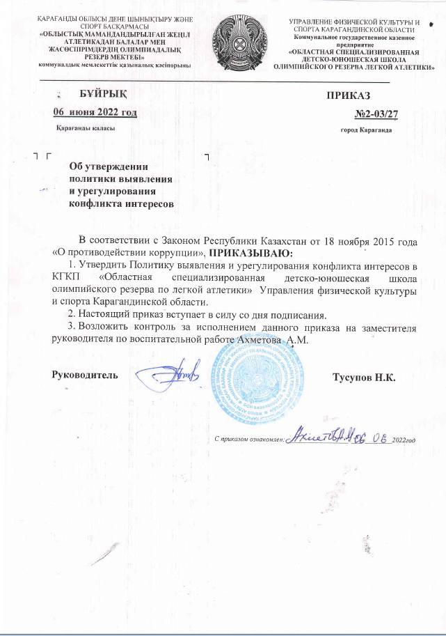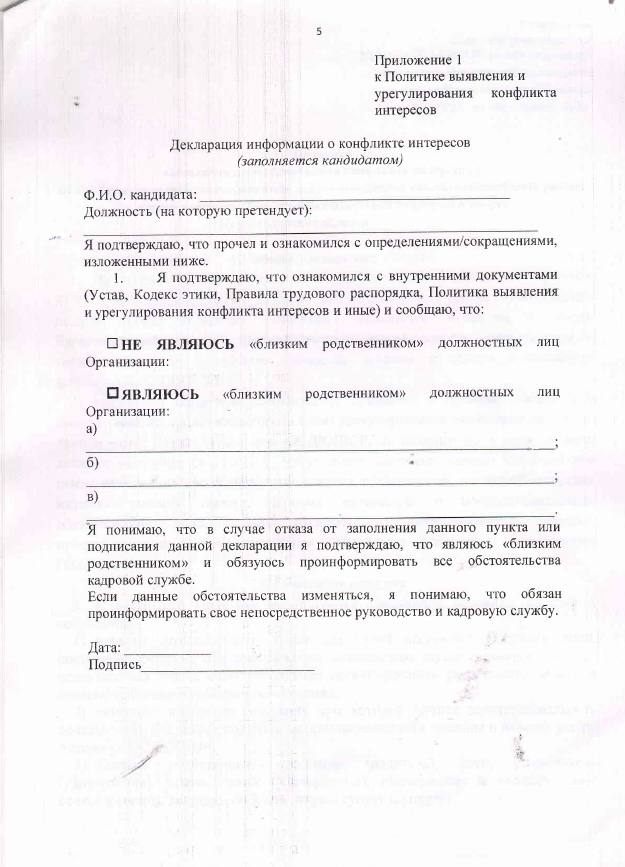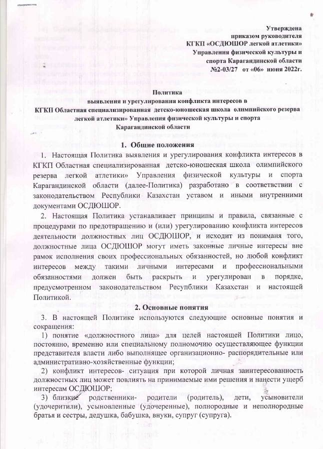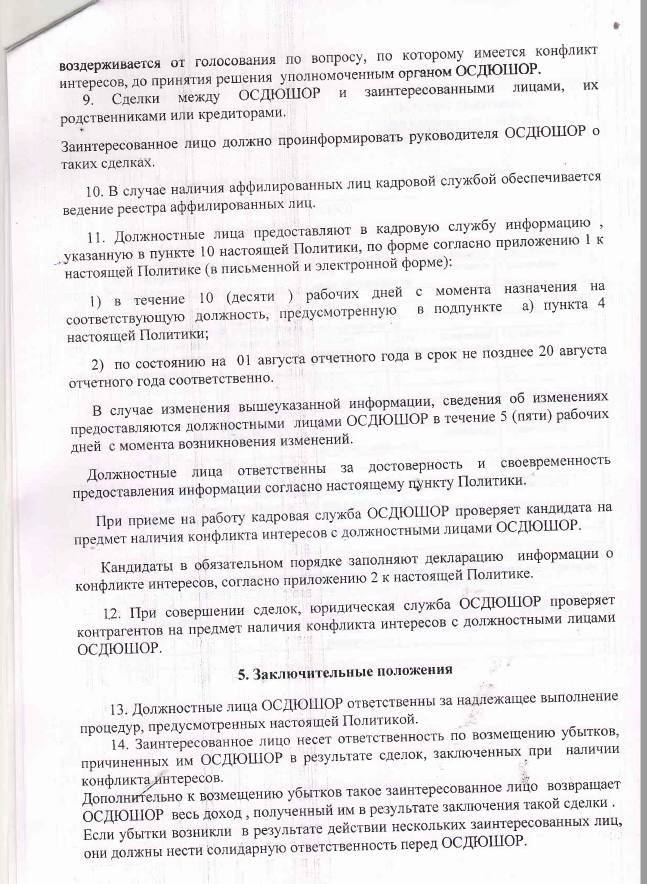 Политика выявления и урегулирования конфликта интересов в КГКП Областная
